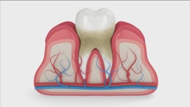 Zapalenie dziąseł spowodowane płytką nazębną - przekrój przez ząb