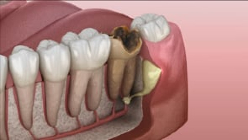 Ząb częściowo zatrzymany, nagryzanie na kaptur dziąsłowy